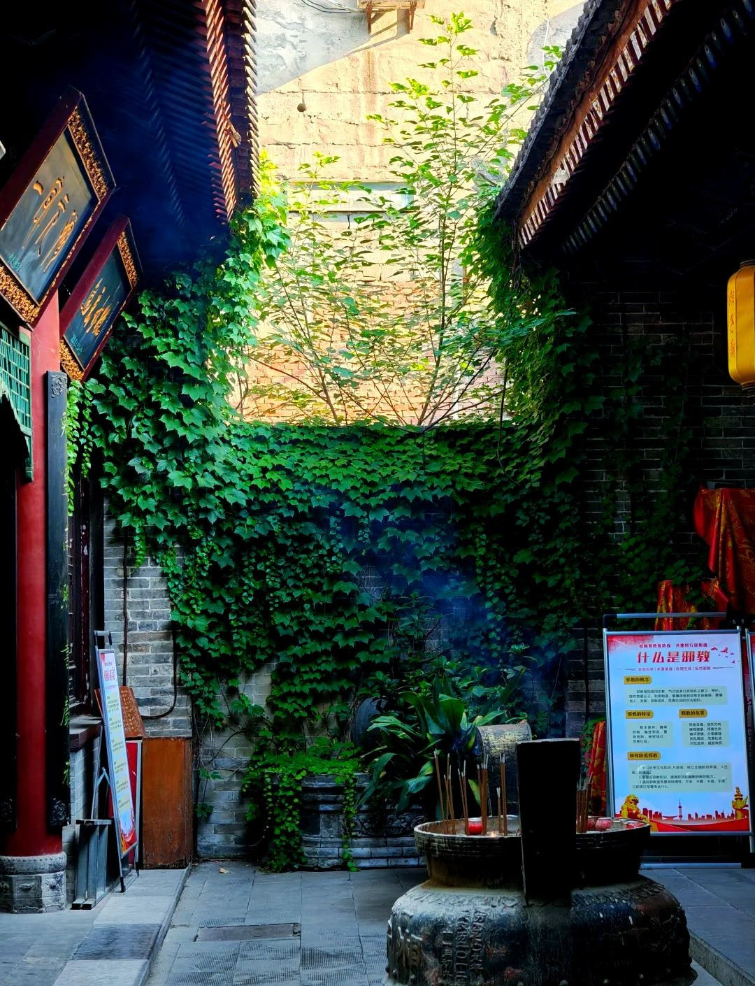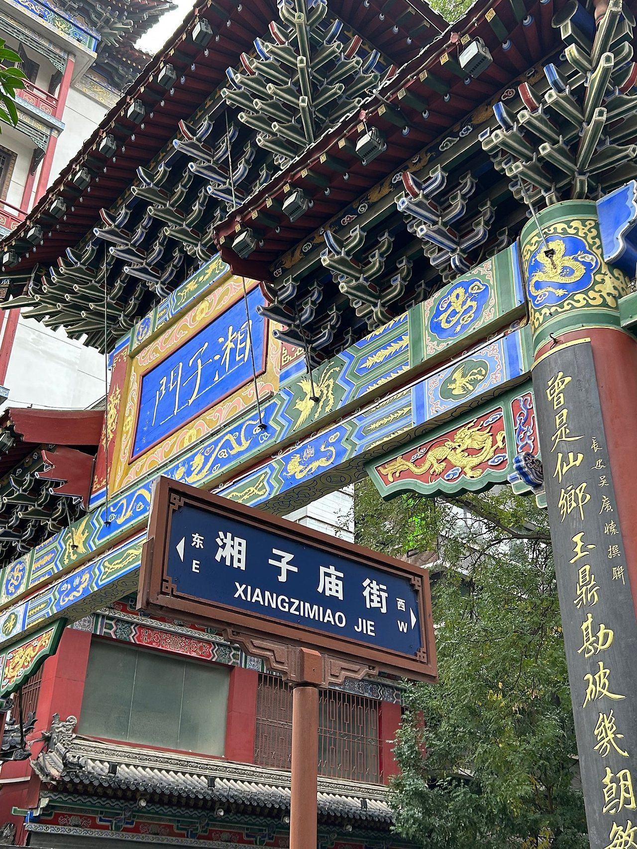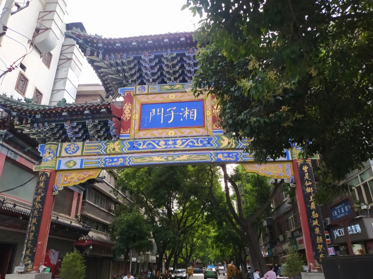 상자묘거리에 들어서면, 거리 입구에 높이 솟은 '상자문(湘子门)' 패루(牌楼)가 눈에 띕니다. 거리 양쪽에는 푸른 나무가 우거져 있고, 햇빛이 나뭇잎 사이로 스며들어 땅위에 얼룩진 무늬를 만들어냅니다. 거리를 따라 천천히 몇 분 걸으면 상자묘 앞에 도착합니다.