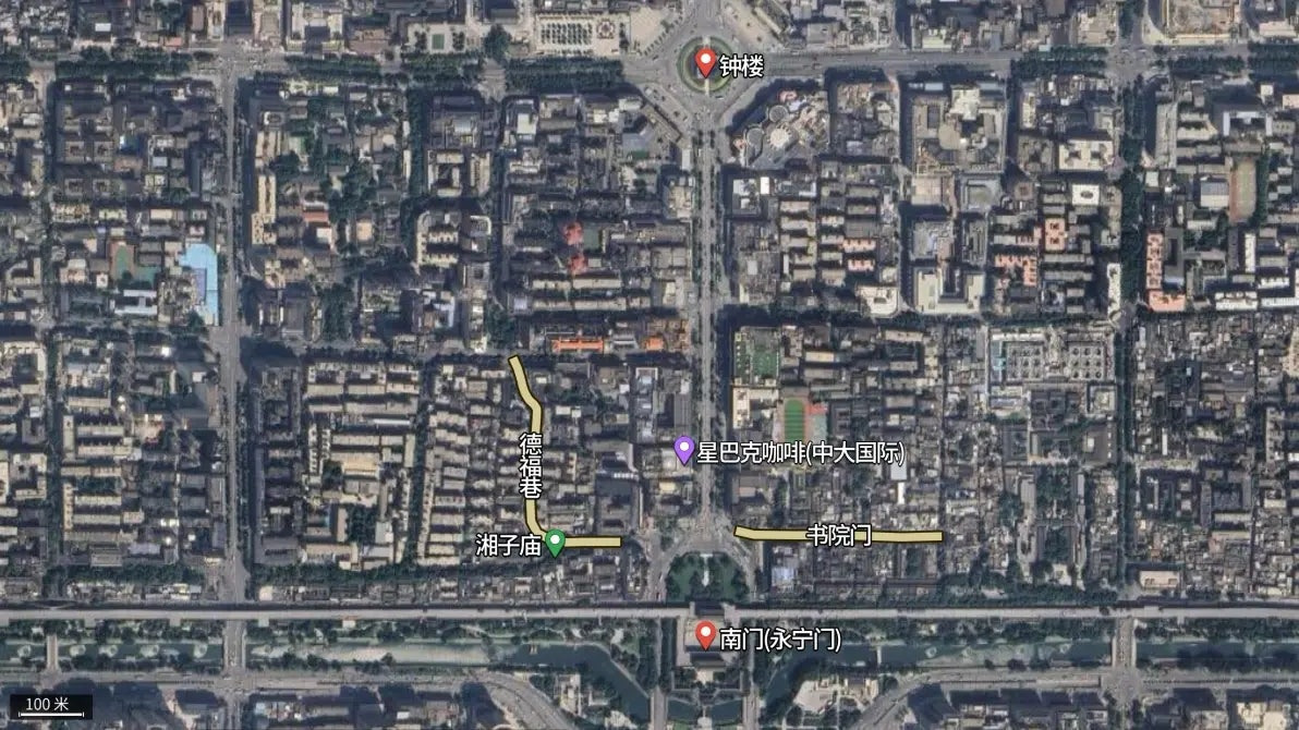상자묘(湘子庙)는 서안 성벽 남문 안쪽 서측에 있으며, 상자묘거리와 더푸샹(德福巷)이 만나는 삼거리에 자리하고 남문 동측의 서원문(书院门)과 길 하나를 사이에 두고 마주 보고 있습니다. 상자묘는 서안에 위치한 도교 전진파(全真派)의 조사묘(祖师庙)이며, 전체 부지 면적은 약 2.5무(亩)입니다.