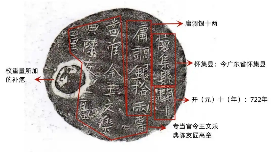 즉, 이 ‘회집용조(怀集庸调)’ 은병은 개원10년(开元十年)에 광동성 회집현에서 납부한 세금용 은입니다. ‘장 고동(匠高童)’이 무게를 검사할 때 10냥에 미치지 못하는 것을 발견하고, 부족한 양을 채워넣었기 때문에 이 독특한 ‘자국’이 남게 된 것입니다.