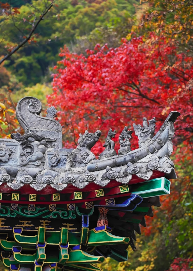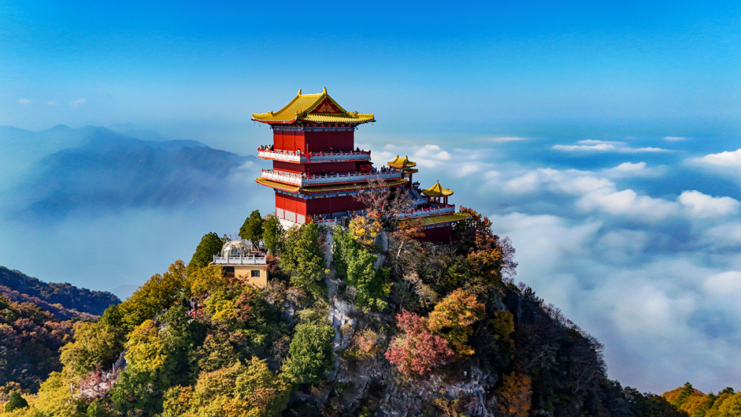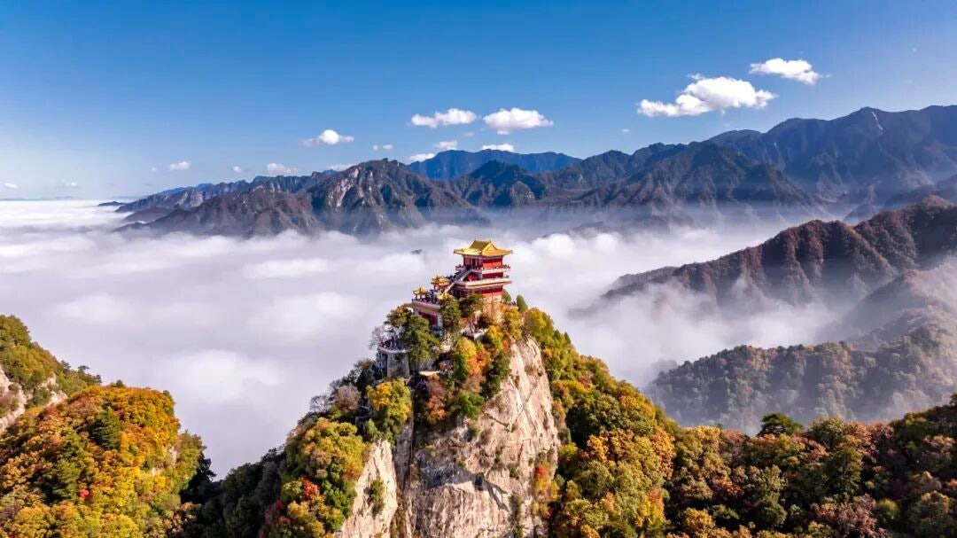 험준한 산 정상에 올라 멀리 바라보면, 장안의 모습이 운무 사이로 아련하게 펼쳐집니다. 눈부신 가을빛과 웅장한 산세가 어우러져 서로를 드높이는 풍경은, 두목(杜牧)이 노래한 “남산이 가을빛과 더불어 그 기세가 서로 드높구나(南山与秋色气势两相高)”라는 시의 한 장면을 그대로 옮겨 놓은 듯합니다.