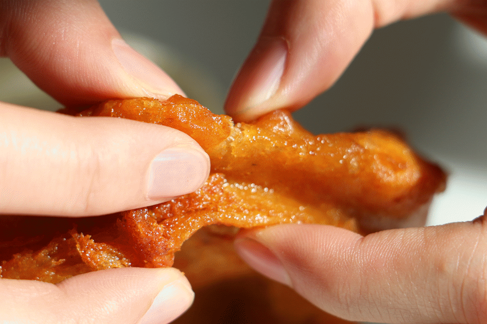 이는 유우석(刘禹锡)의 《영홍시자(咏红柿子)》에 나오는 "새벽에는 별빛을 받아 나타나고, 저녁에는 햇살을 머금고 매달렸네(晓连星影出,晚带日光悬)"라는 구절과 꼭 들어맞습니다. 이렇게 시적이고 아름다운 감을 으깨어 소로 만들어 밀가루를 묻혀 기름에 튀기면, 겉은 바삭하고 속은 부드러운 황금빛 간식이 완성됩니다. 한 입 베어 물면 입안 가득 가을의 향기롭고 달콤하며 쫀득한 맛이 퍼집니다.