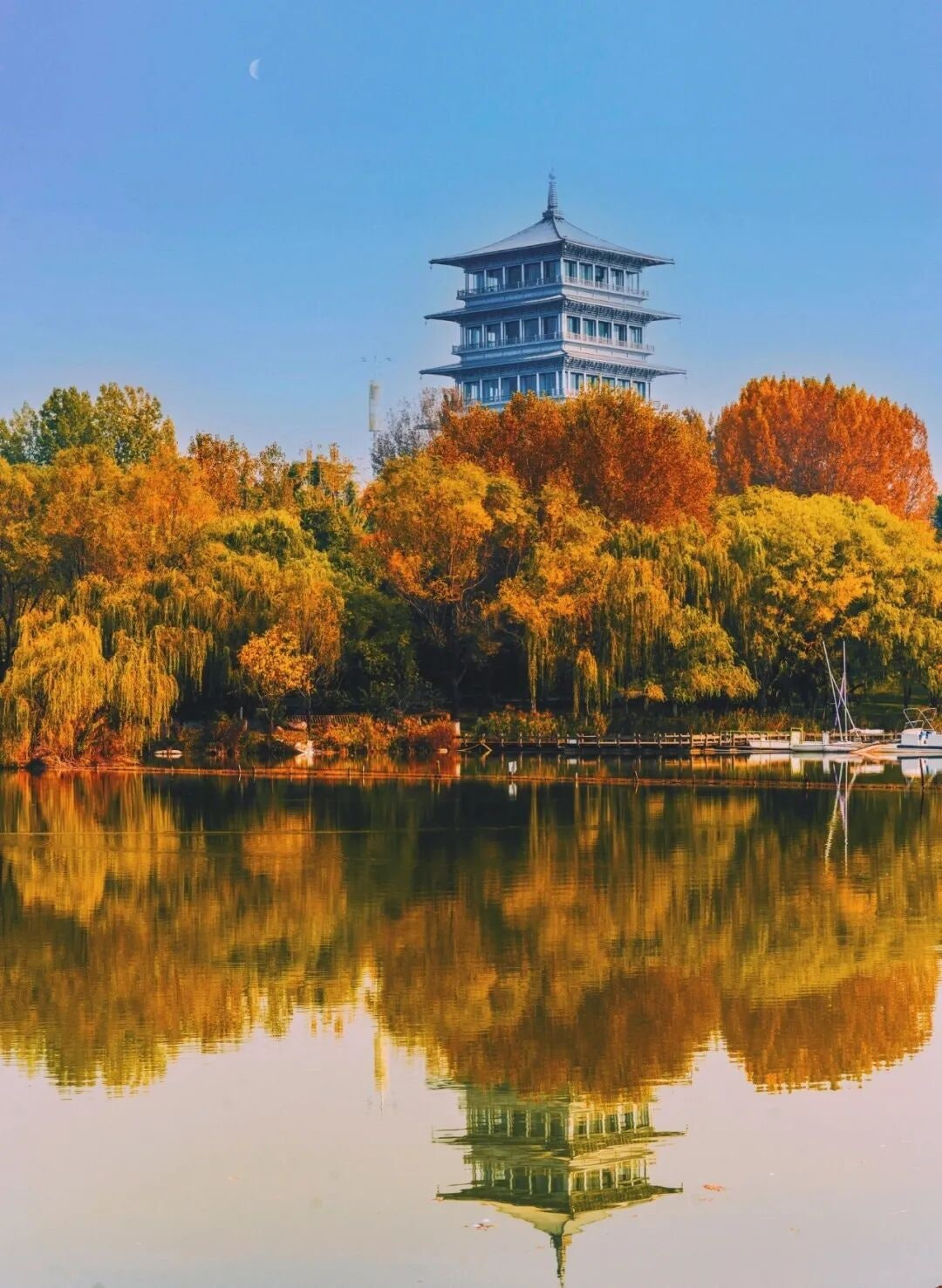 "가을바람 위수를 스치고, 낙엽은 장안에 가득하네(秋风吹渭水,落叶满长安)" 가도(贾岛)의 시는 풍경을 묘사했을 뿐만 아니라, 장안(长安) 가을의 시각적 분위기를 확고히 했습니다. 서안의 가을 색채는 화려하고 따뜻합니다. 은행잎은 황금빛으로, 단풍잎은 불타는 듯한 붉은빛으로 물들어 눈부신 그림을 만들어 냅니다.