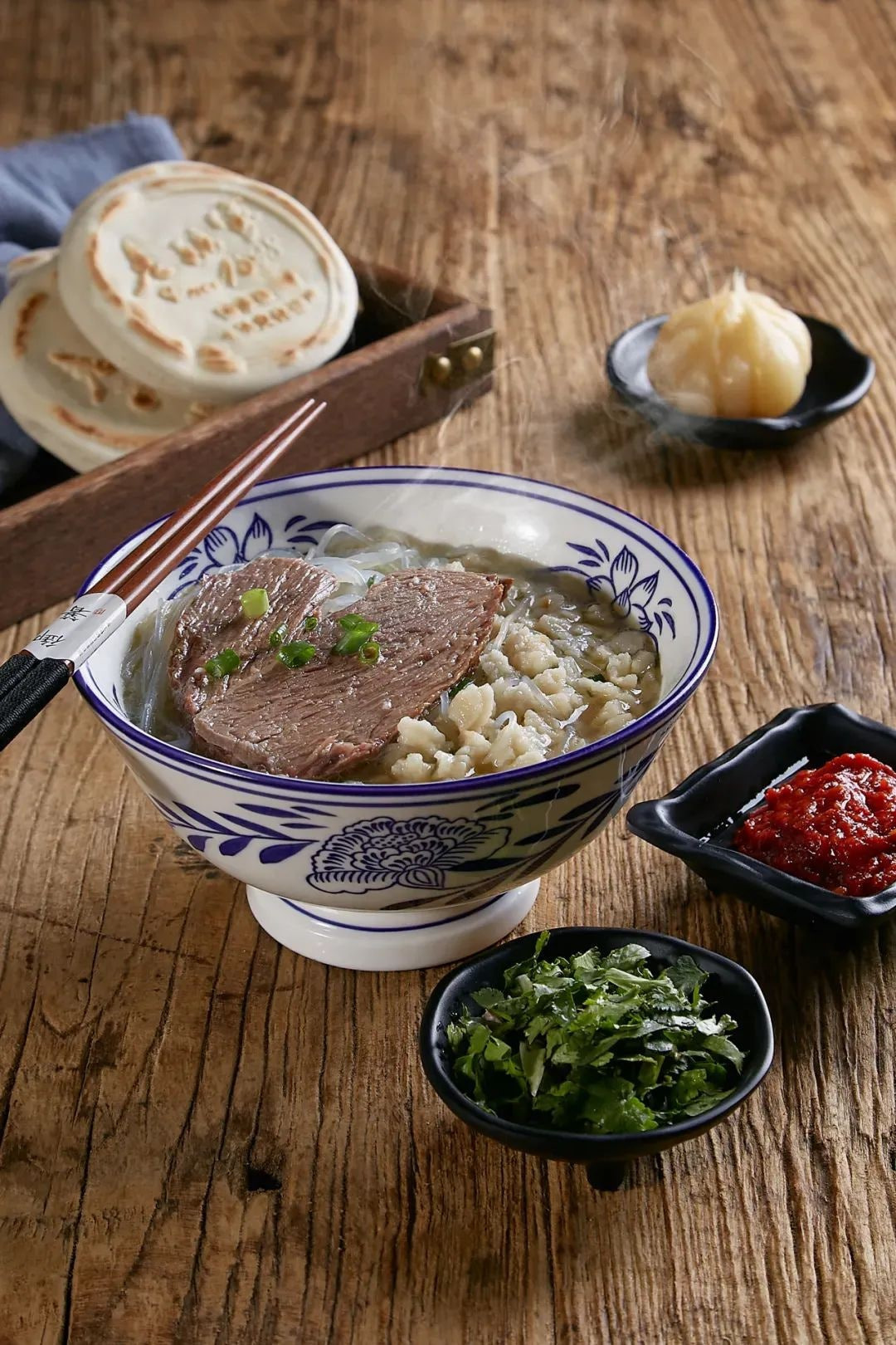 싸늘한 서안의 가을밤, 따뜻한 양러우 파오뭐(羊肉泡馍) 한 그릇은 우리의 모든 갈망을 만족할수 있습니다. 손으로 퉈퉈뭐(饦饦馍)를 잘게 찢어낸 후, 뜨겁게 끓는 양고기 국물에 푹 잠기도록 육수를 부어주는 과정 자체가 하나의 의식과 같습니다. 이 풍미 깊은 양고기 국물은 이백(李白)의 "양과 소를 삶고 잡으며 즐겁게 지내니, 마땅히 삼백 잔을 마셔야지(烹羊宰牛且为乐,会须一饮三百杯)"라는 호방한 장면을 연상시키며, 당나라의 웅장한 기상을 느끼게 합니다.