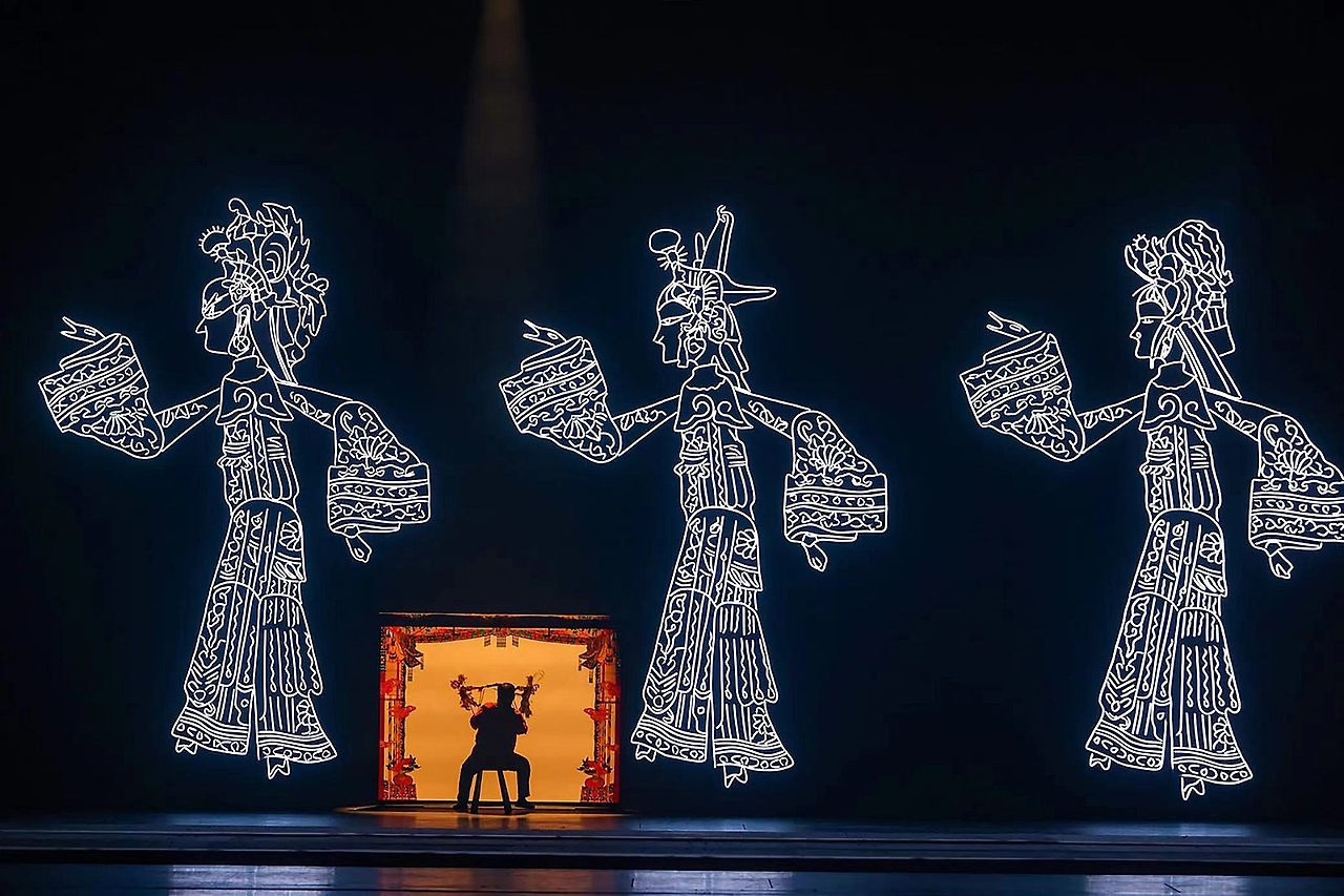 장이머우 감독의 《무계·장안》은 ‘무형문화유산+과학기술+공연’이라는 융합 모델을 혁신적으로 구현하여 관람객들에게 “1시간 동안 천년 장안(長安)의 역사에 빠져들게 하는” 특별한 문화 체험을 선사합니다. 생동감 넘치는 대형 피영(皮影, 그림자극)은 고대 ‘봉신(封神)’ 이야기를 생생하게 재현하고, 현실과 가상이 교차하는 디지털 병마용 대열은 과거와 현재를 잇는 시공간의 다리를 놓았습니다. 아울러 동적인 실시간 프로젝션 매핑 기술은 정적인 한계를 넘어 전통 면소(面塑, 밀가루 인형 공예) 예술이 무대 위에서 ‘생생히 숨 쉬는’ 모습으로 재탄생하게 하였습니다.