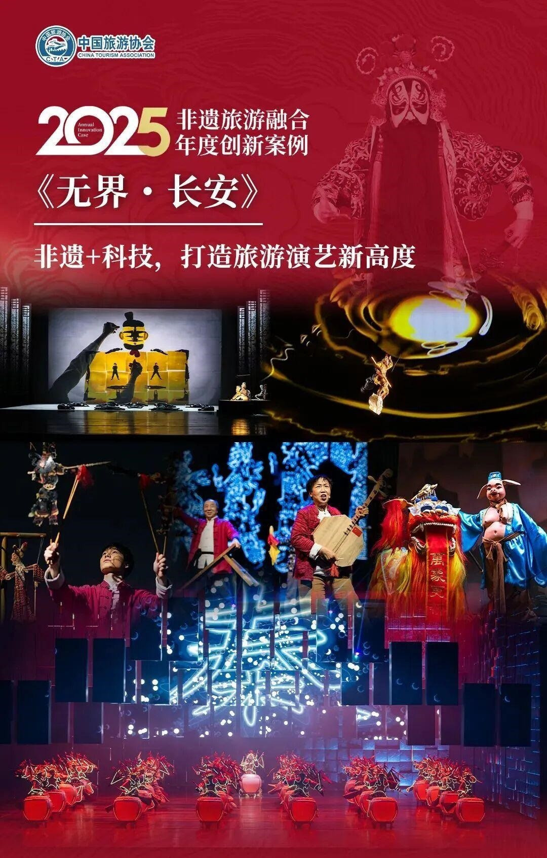 최근, 중국 문화관광부 무형문화유산사가 위촉하고 중국여행협회가 주관한 ‘2025 무형문화유산·관광 융합 올해의 혁신 사례’ 심사 결과가 공식 발표되었습니다. 그중 중국 최초의 대형 상설 공연 《무계·장안(無界·長安)》은 전국 132개 신청 사례 가운데 두각을 나타내며 ‘올해의 20대 혁신 사례’에 선정되었습니다. 이는 현재 무형문화유산과 관광의 심층 융합 및 협력 발전을 대표하는 표준적인 사례로 자리매김하였습니다.