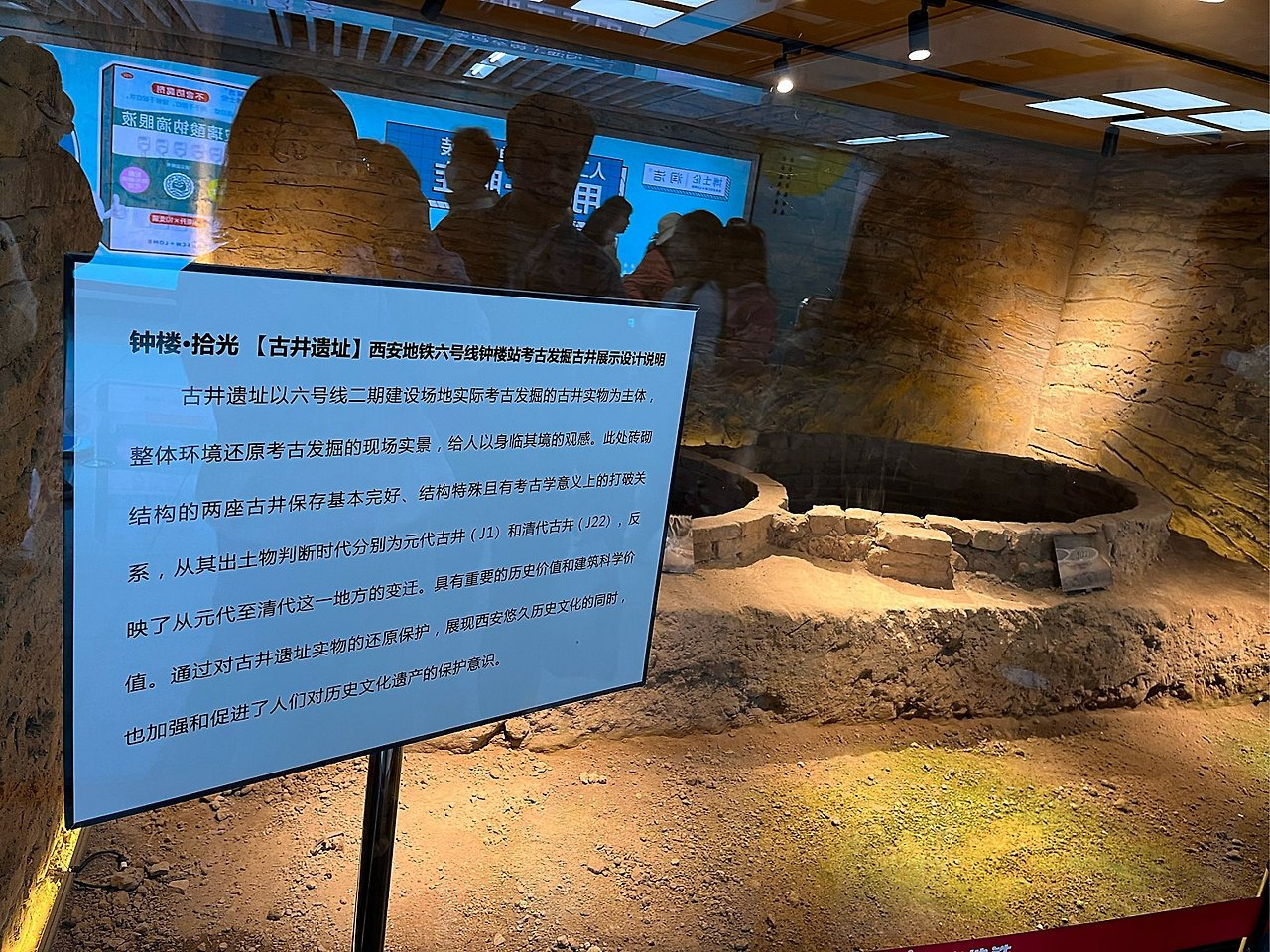 역사의 시선은 고도(古都)의 골목과 일상에 머물러 있습니다. 서안 지하철 종루(钟楼)역 환승 통로에는 원나라시대와 청나라시대의 고대 우물 유적이 그대로 보존되어 있고 유리벽 너머로 벽돌과 돌에 새겨진 세월의 흔적이 선명하게 드러납니다. 이 유적은 지하철 공사 중 발견되었으며, 원형을 보존하면서 전시하는 혁신적인 방식으로 개발과 보호의 조화를 이루었습니다.