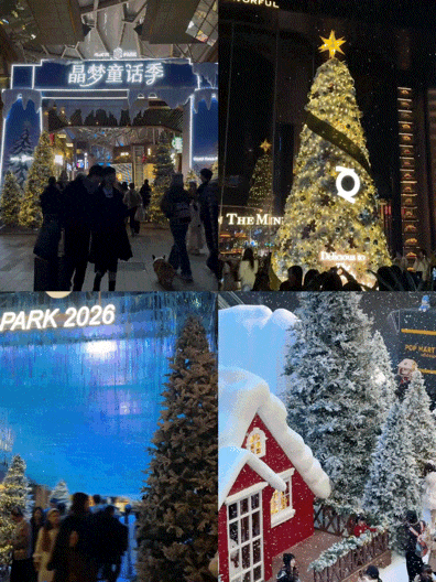 노성근(老城根) G Park에서는 ‘크리스탈 드림 동화 시즌(晶梦童话季)’이라는 대형 프로젝트가 고도에 환상적인 모습을 선사합니다. 곳곳에 흩뿌려진 ‘눈꽃’, 하얀 서리를 머금은 소나무, 동화 속에나 나올 법한 빨간 나무집이 어우러져 손에 잡힐 듯한 겨울 풍경을 창조해냈습니다. 이제 겨울의 낭만은 상상 속에만 머물지 않고, 시민들의 일상 속 따뜻함과 기쁨이 되었습니다.