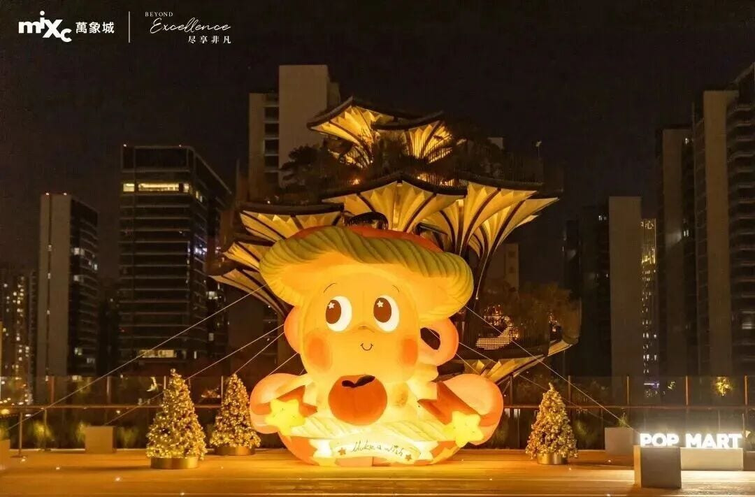 서안 완샹청(万象城.MixC몰)에서는 서북 지역 최초로 팝마트(POP MART)의 ‘당신은 정말 소중합니다(你最珍贵)’ 시리즈 테마 전시가 열리고 있습니다. 이곳의 ‘겨울 마을’ 전체가 방문객을 위한 선물상자와도 같습니다. 트렌디한 IP 캐릭터의 조형미와 세부 디테일, 그 사이를 장식한 금색 빛깔은 마치 새벽 구름에 서린 은은한 빛처럼 공간 전체에 따뜻하고 소중한 느낌을 불어넣습니다. L1 북측, 1번 게이트 앞 광장, L5 옥상 정원 등 세 곳의 아름다운 포토존이 여러분을 기다리고 있습니다.