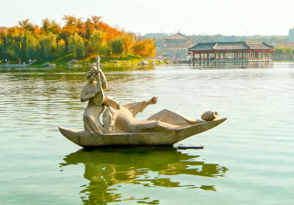 고즈넉한 골목이 너무 잔잔하다면, 곡강지 유적공원은 활짝 열린 세상을 선사합니다. 과거 당나라 황실의 원림이 있던 이곳은 이제 시민들을 위한 개방형 공원이 되었습니다. 탁 트인 공원에는 호수 물결이 출렁이고 정자와 누각이 곳곳을 장식합니다. 산책하는 어르신과 뛰노는 아이들의 모습에서 일상의 여유와 시정이 묻어납니다.