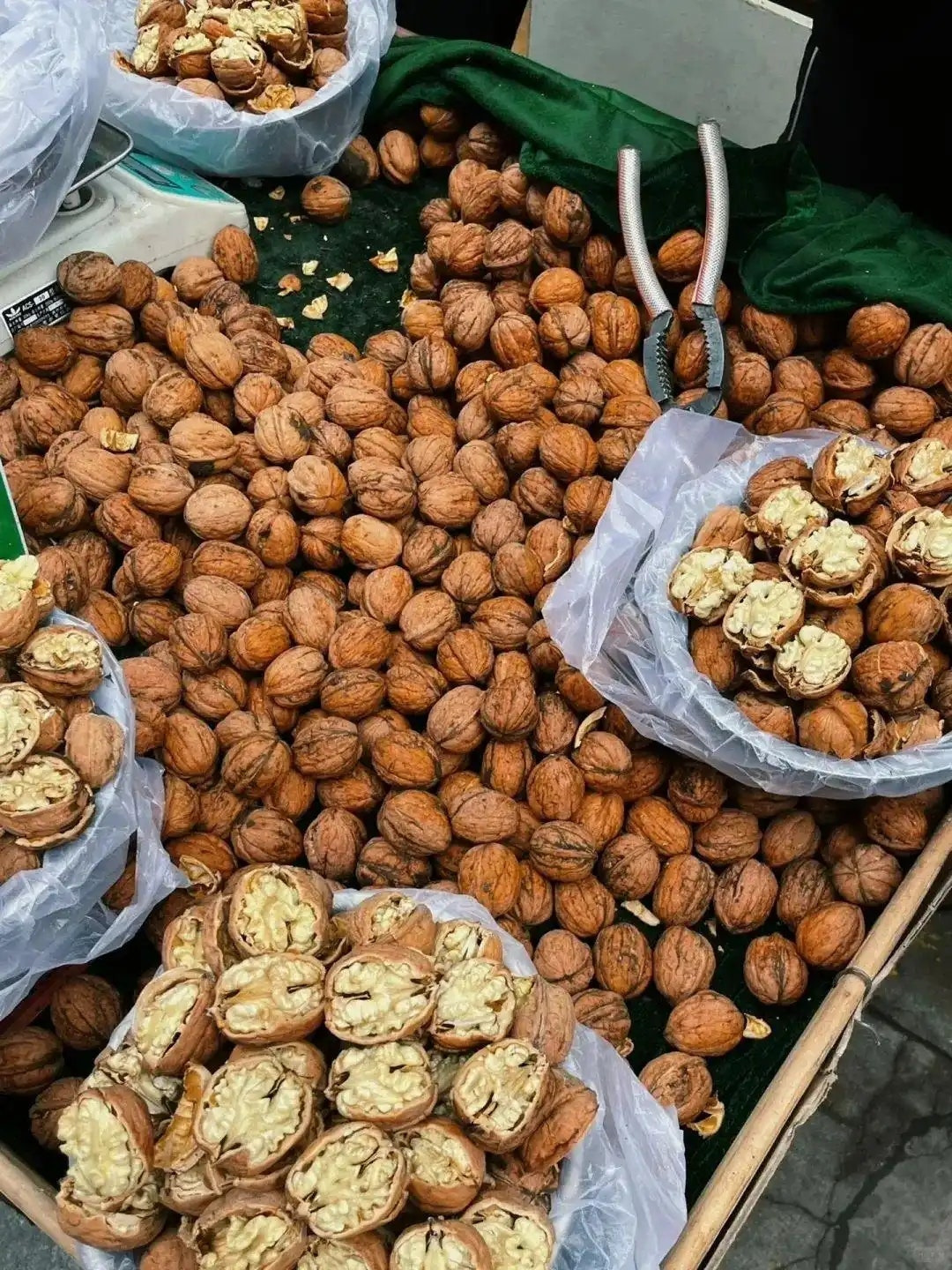 가장 싱싱하고 푸른 채소가 모두 팡즈청(纺织城) 아침시장에 모여 있습니다. 가지 줄기에는 아직도 가시가 달려 있고 반찬용 장아찌, 당산(糖蒜.설탕절인 마늘), 파오지오(泡椒.고추장아찌), 라자오장(辣椒酱.고추장)과 후추, 팔각, 계피 등의 향신료가 함께 놓여 있는 이곳에서 다양한 요리 솜씨를 마음껏 뽐낼 수 있는 자신감을 얻을 수 있습니다.