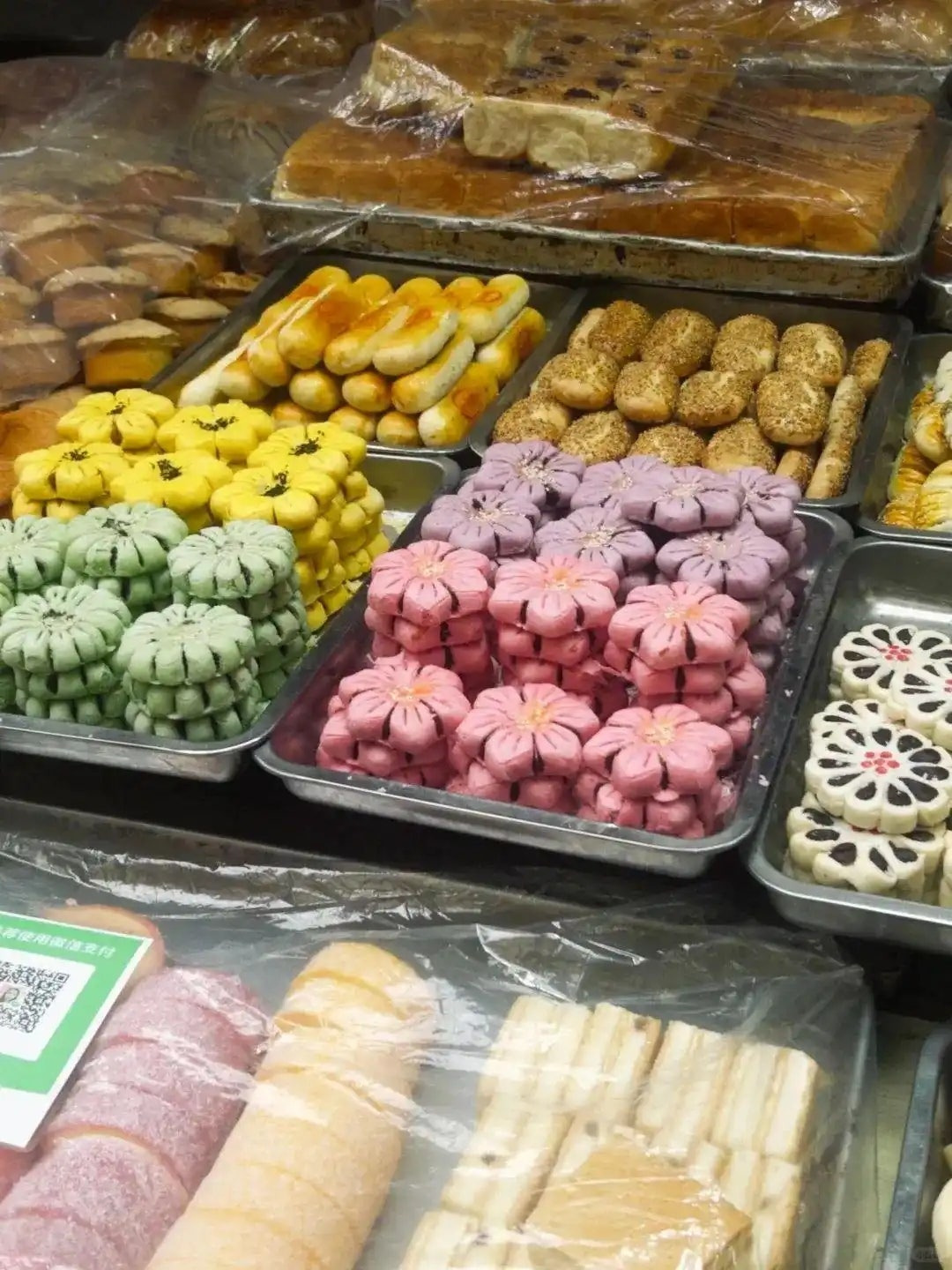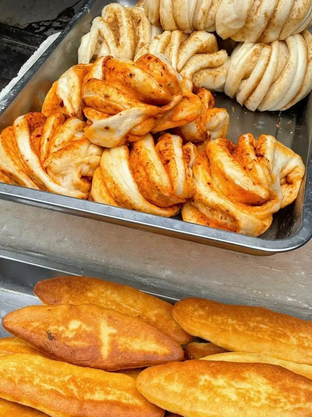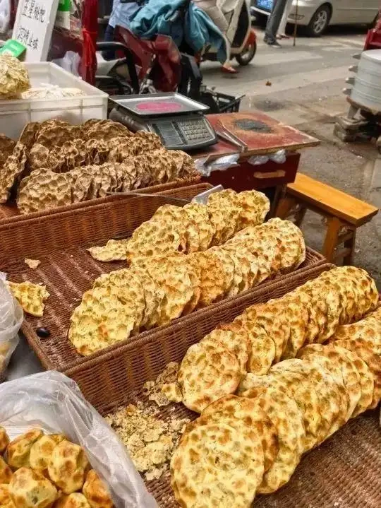 과일 가게 바로 옆에는 밀가루 음식 가게가 있습니다. 스텐 쟁반에 마라 화권(麻辣花卷)이 담겨 있고, 잘 발효되고 갓 쪄낸 만터우(馒头)는 하얗고 통통합니다. 기름 냄비에서 탕가오(糖糕)가 위아래로 뒤집히며 튀겨지고, 한 입 베어 물자 흑설탕이 바로 흘러나옵니다.