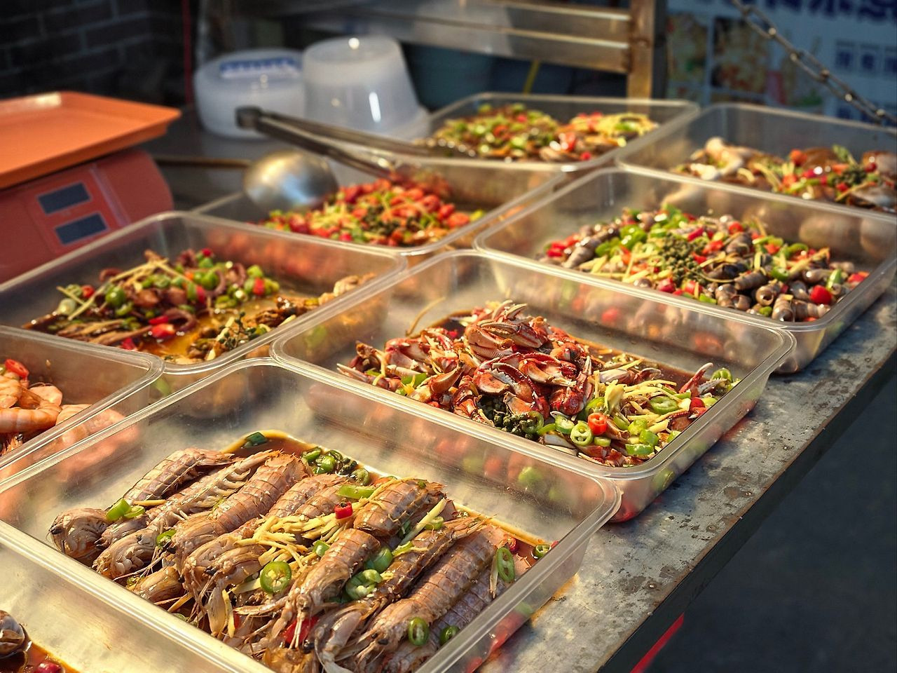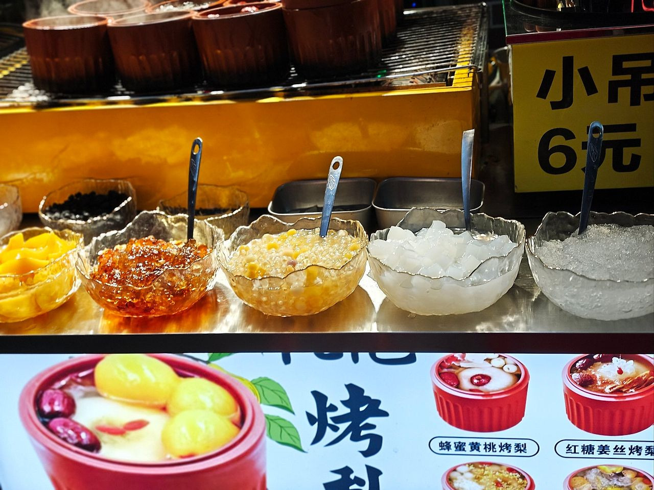 조시장부터 야시장까지 초장시간 영업하는 이곳은 언제나 북적이는 활기로 가득 차 있습니다. 주식부터 간식까지, 채소 반찬부터 조리된 육류까지, 이곳의 음식 노점들은 종류가 풍부하고 가격이 저렴하며 맛도 다양합니다. 대학가와 인접해 있어 과일 찹쌀떡(水果糯米糕), 라오즈 샤오하이셴(捞汁小海鲜), 예나이 칭부량(코코넛 음료/椰奶清补凉) 등 학생들이 좋아하는 다양한 트렌디한 간식도 즐비합니다.