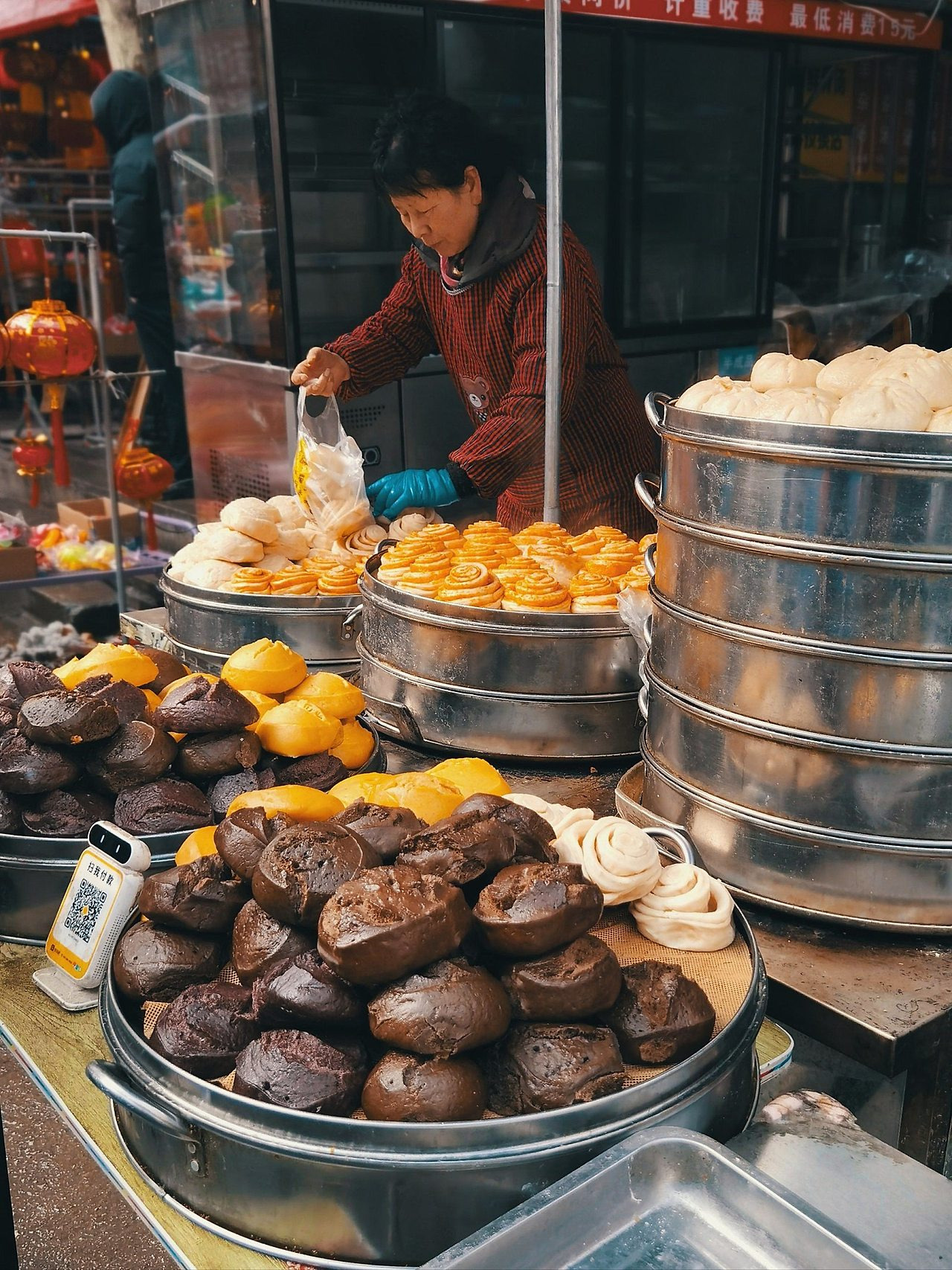 ✨ 추천: 수지엔바오(水煎包), 마이판(麦饭), 마장촨촨(麻酱串串), 뤼러우 훠샤오(驴肉火烧) 등